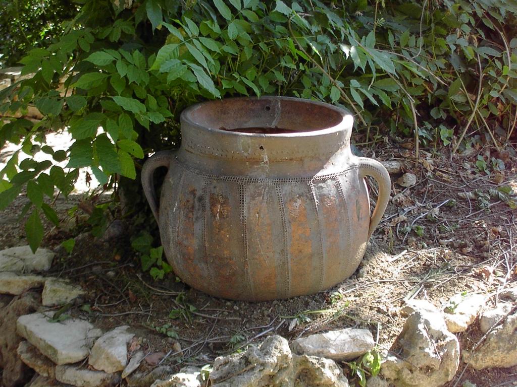 Le BUJOUR de La Mérine ! . Cette machine à laver servait dans nos campagnes. On y lavait son linge dans ce cuvier en terre cuite fabriqué par Les Bujoliers à St Césaire (18ème et 19ème siècles).