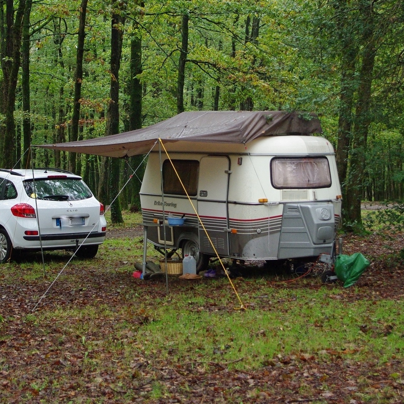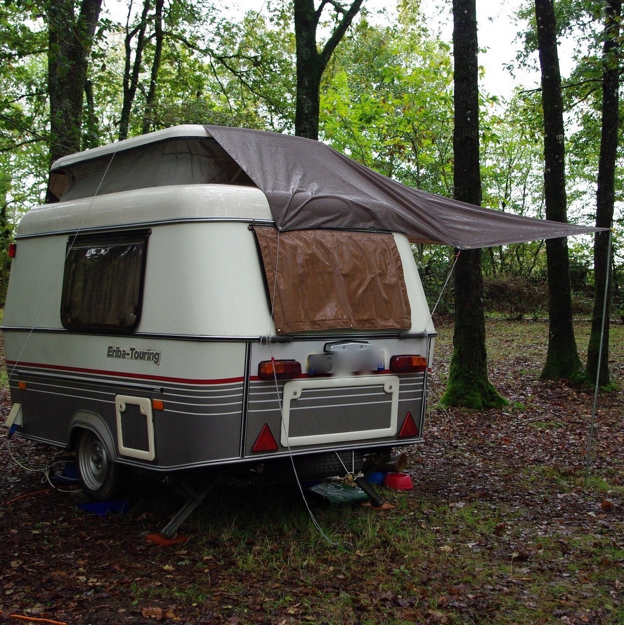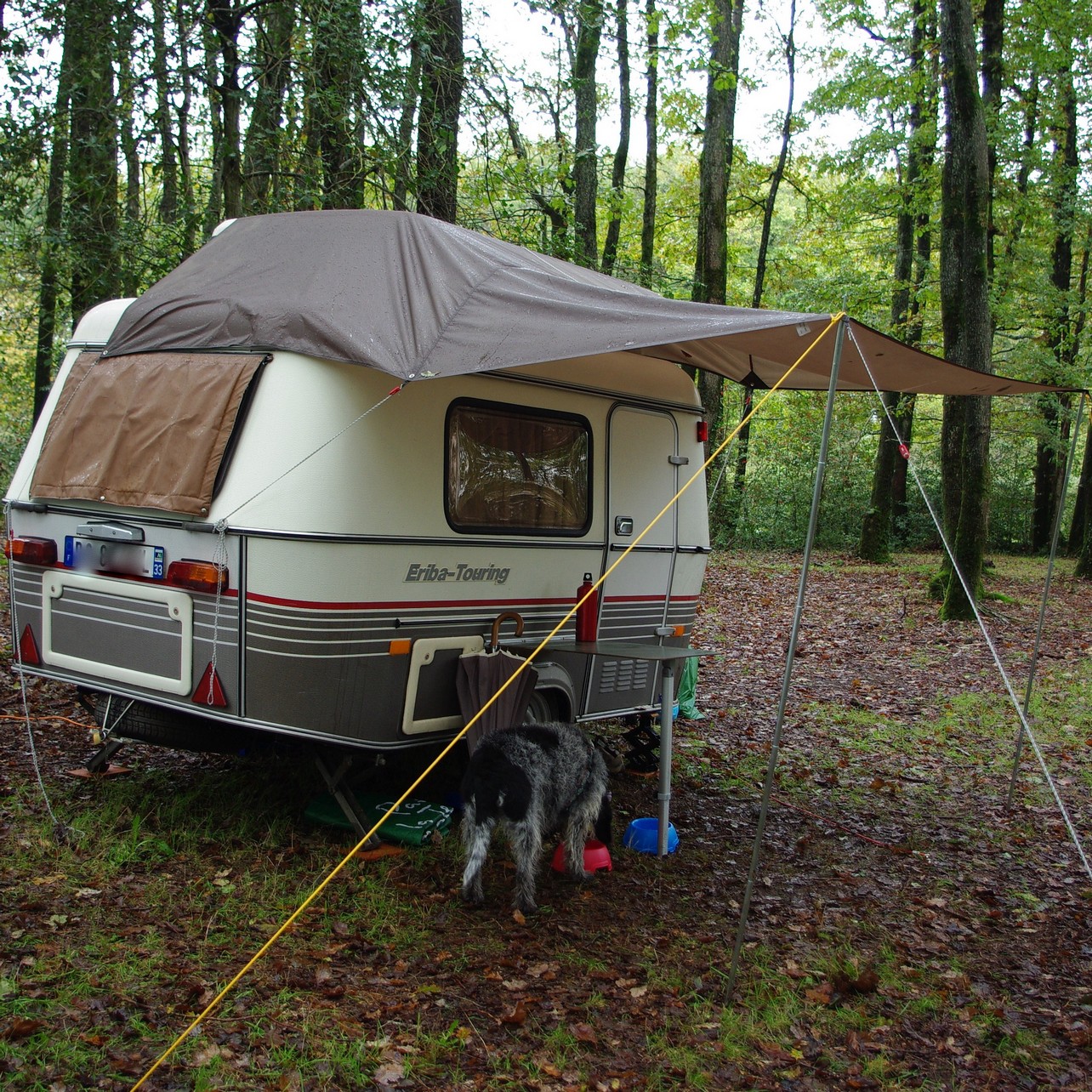 Je reprend mon idée de solette improvisée avec un tarp que j'avais évoqué dans un autre sujet. J'avais émis des doutes sur la solidité, et bien après le dernier séjour pendant ces vacances -3 jours à Ménigoute au festival de films animaliers - où ,pluie diluvienne, vent très fort la nuit ont servi de test, et... super ! Pas de fuites, ni déchirures, à peine s'il a fallu retendre les étais.