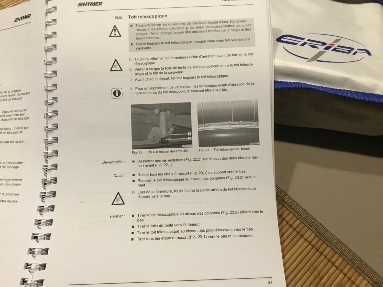 Un doute m a pris à la lecture du post.....donc vérification..... et sur notice hymer sur ma troll 2017 et je pense sur l ensemble du parc à priori , il n y’a pas de sens pour l ouverture . Par contre lors de la fermeture il faut impérativement commencer par la partie arrière .