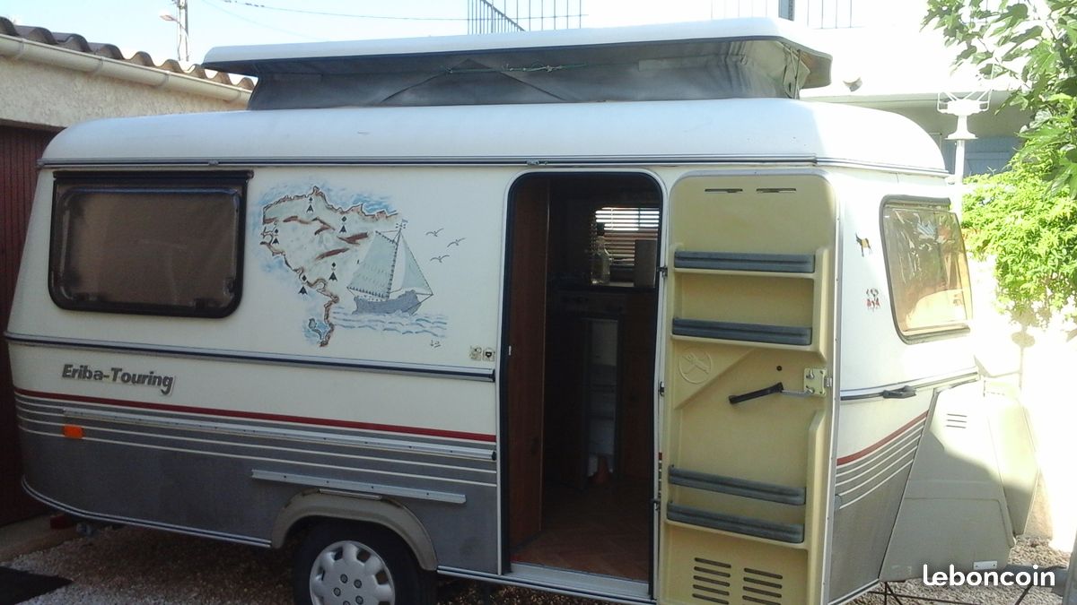 ERIBA TRITON 1990 , 3 personnes , cabinet toilette , anti -lacet, permis E non nécessaire . Auvent Soplair . Légère et maniable. Pour son âge, elle est en bon état .