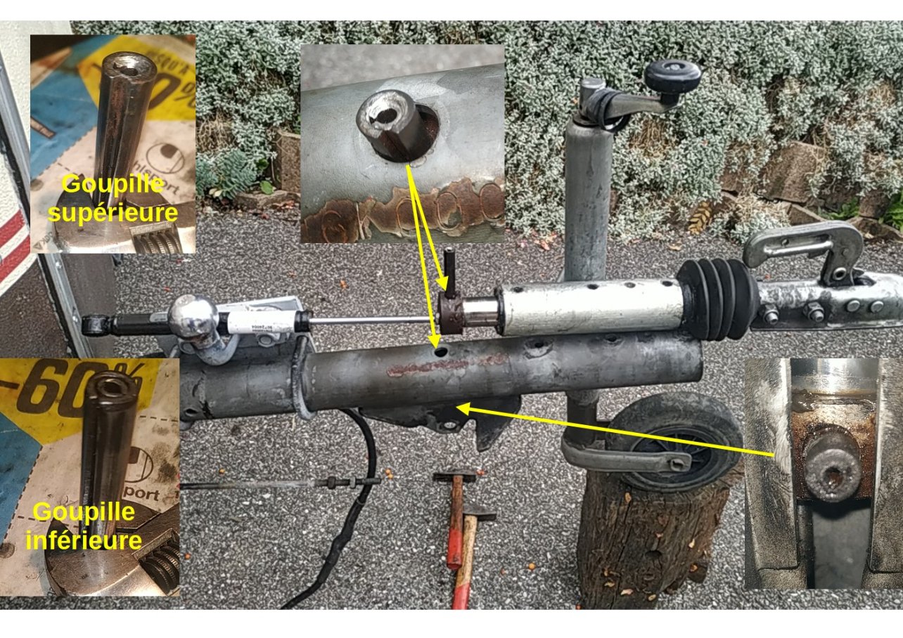 En aucun cas la goupille ne doit être en contact avec le fut du timon puisque le but du coulisseau est de coulisser lors des freinages.