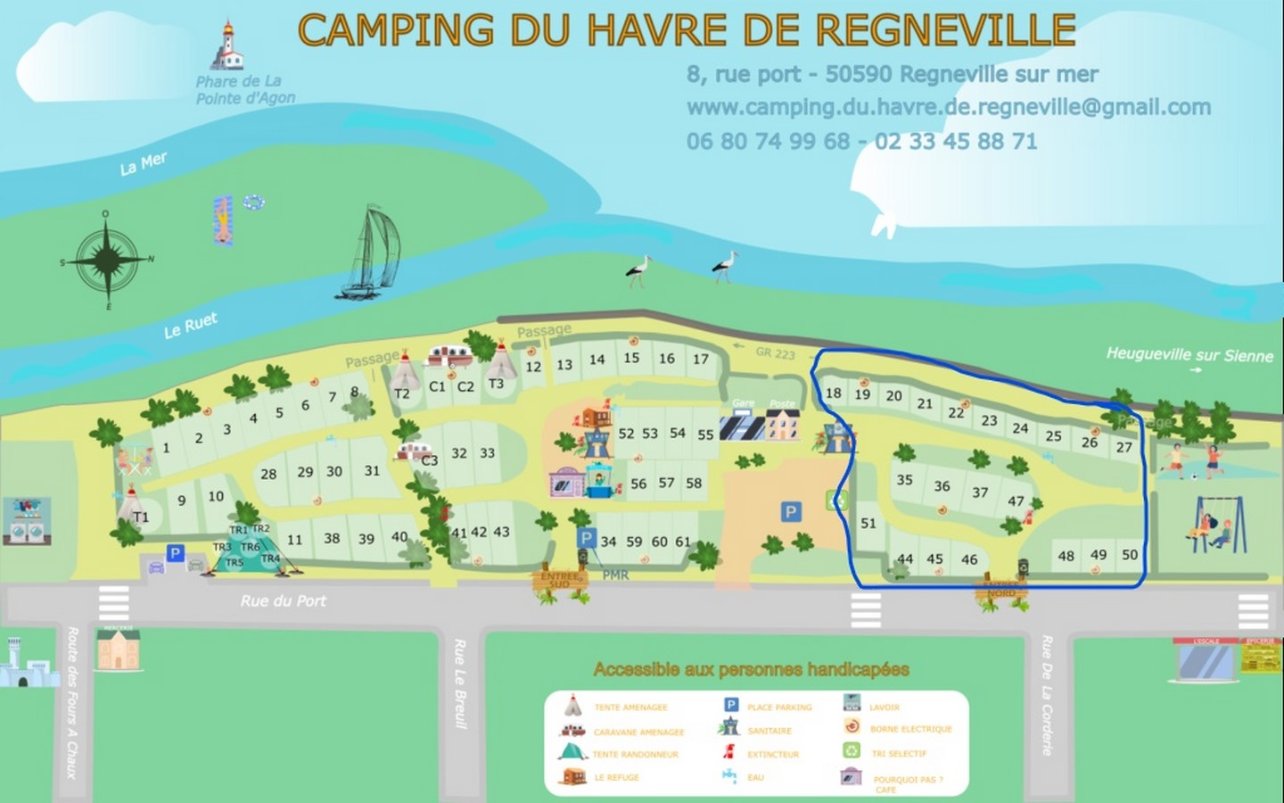 Mais oui, je suis passé à Regnéville sur Mer au mois d'avril afin de finaliser la rencontre et j'ai réservé toute la partie droite du camping, voir le plan en page 1, auprès de Victoire, la responsable. (Sauf les places 18 et 19 qui sont occupés par des locaux)