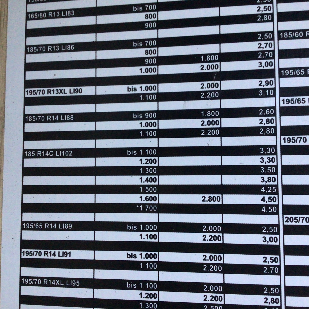 Sur ma Familia je mets entre 3.2 & 3.5, pneus C ou XL (renforcés).
