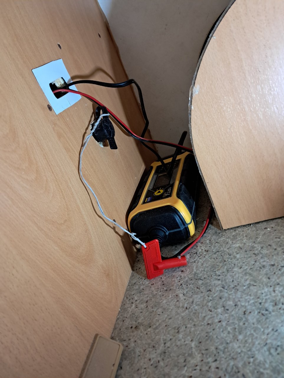 J'ai fait rajouter une prise à l'extérieur du coffre, qui me sert pour le chargeur mais aussi pour autre chose.