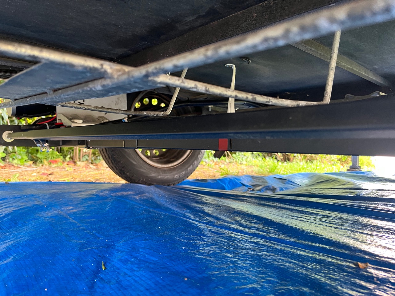 Pour la roue se secours à voir soit il la déplace vers l'arrière soit vers l'avant mais avec les amortisseurs et le marche pied ça ne passera pas d'après lui, au pire je la cale pendant le trajet à l'intérieur sous la dinette.