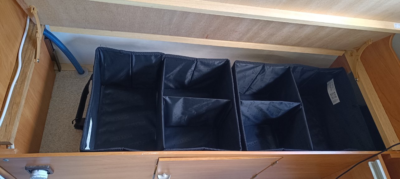 - optimisation des rangements sous les banquettes avant avec des organiseurs de coffre ... sachant que sur la 418, les coffres avant sont particulièrement grands puisqu'il n'y a pas de cabinet de toilette pour prendre toute la place (et pour servir de débarras)
