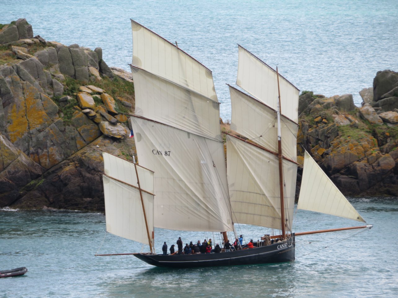 Pour la petite histoire, les Bisquines, spécifiques à la baie de Cancale, étaient destinées à la pêche des huitres par chalutage sur le côté. Ces bateaux étaient profilés et très toilés pour disposer d'assez de puissance au travail et revenir le plus vite possible au port de façon à être dans les premiers à la vente.