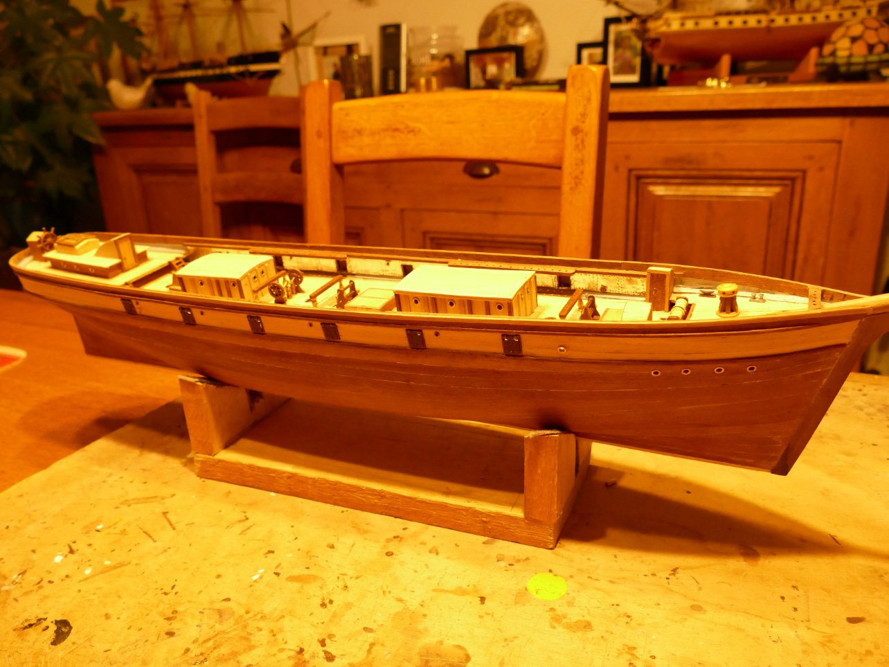 Bon ! Pour la vedette je n'ai pas fait de photos en cours de construction ma j'en ferais demain pour l'état actuel d'avancement.
