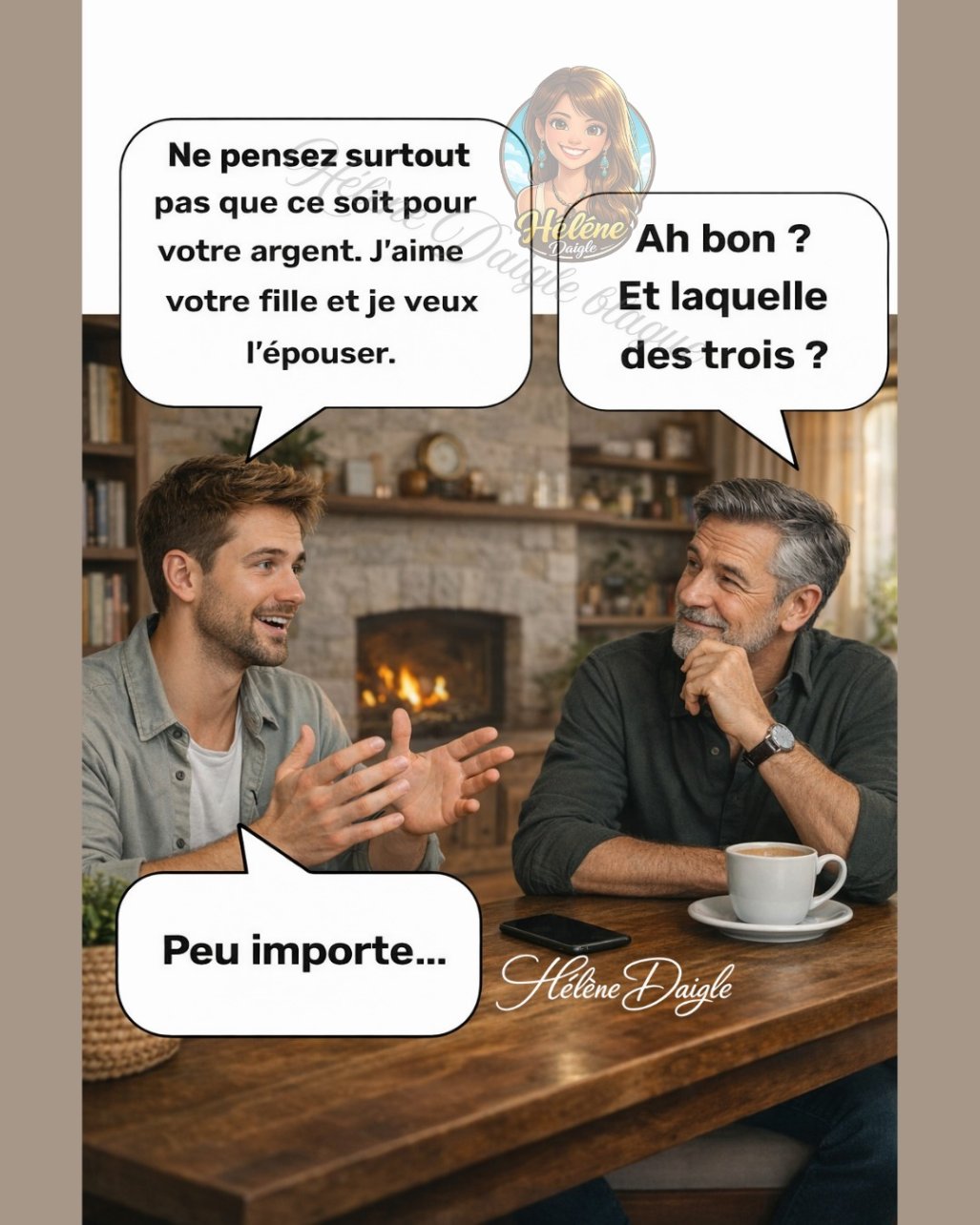 Son mari la regarde droit dans les yeux et lui répond :