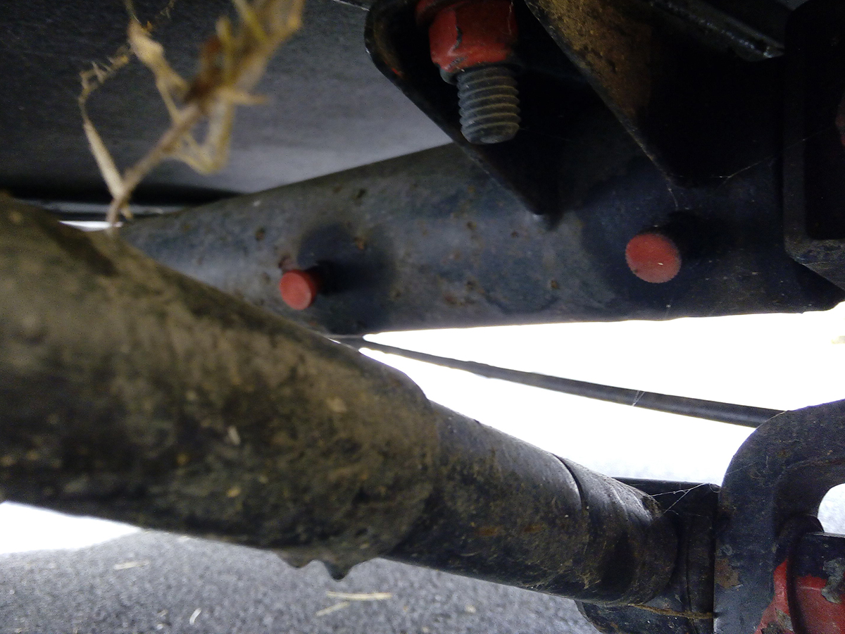 Et sur l'essieu, si essieu à lames de torsion Cachés sous le bouchon rouge.