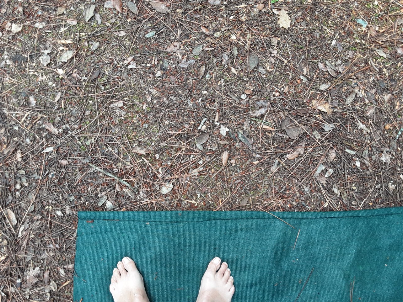 Je suis seul, avec Guimauve, pour l'installation du campement. Après avoir mis une éternité à installer la solette je passe au tapis de sol.