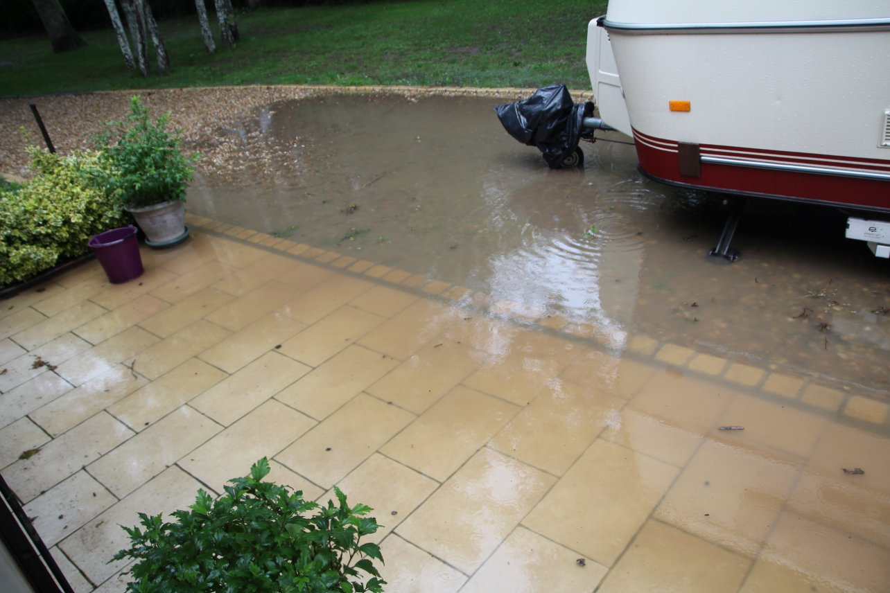 Je viens du camping-car et j'ai encore ce fameux tapis qui doit mesurer 3 m sur 4 m. Pas évident non plus à déplier et à tendre.