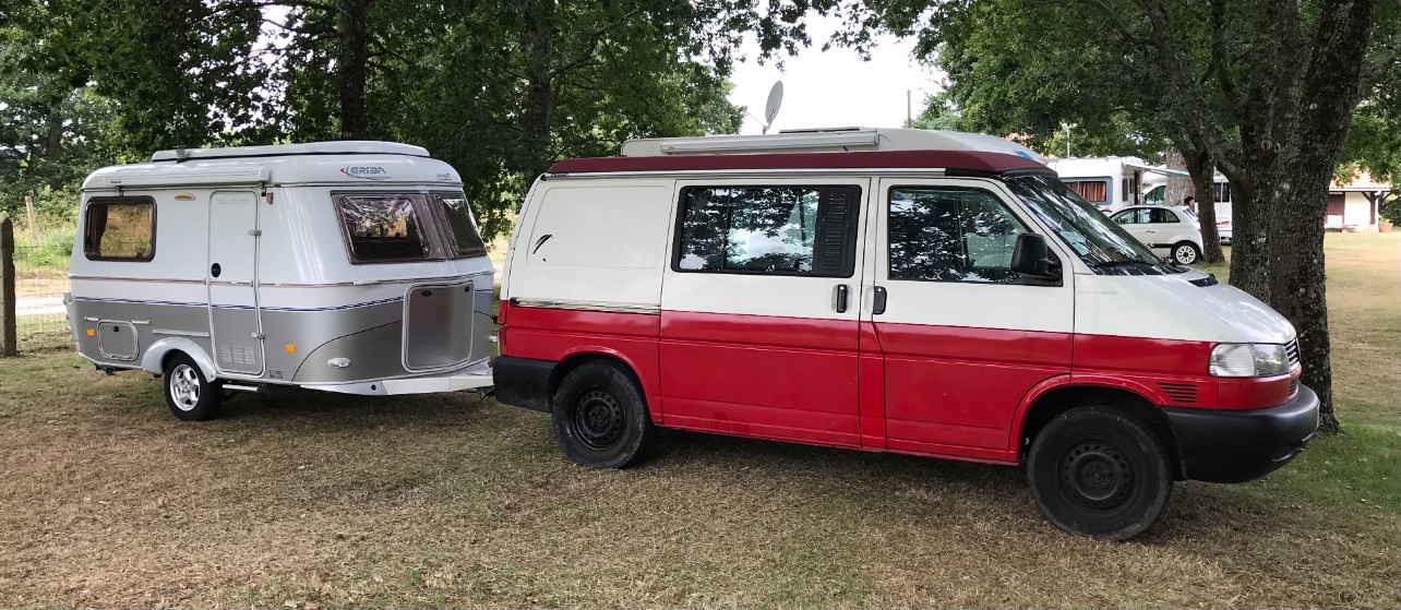 L’ensemble véhicule VW T4 Syncro 2002, avec Eriba Pan Familia 2005, prêt pour le départ vers des autres aventures.