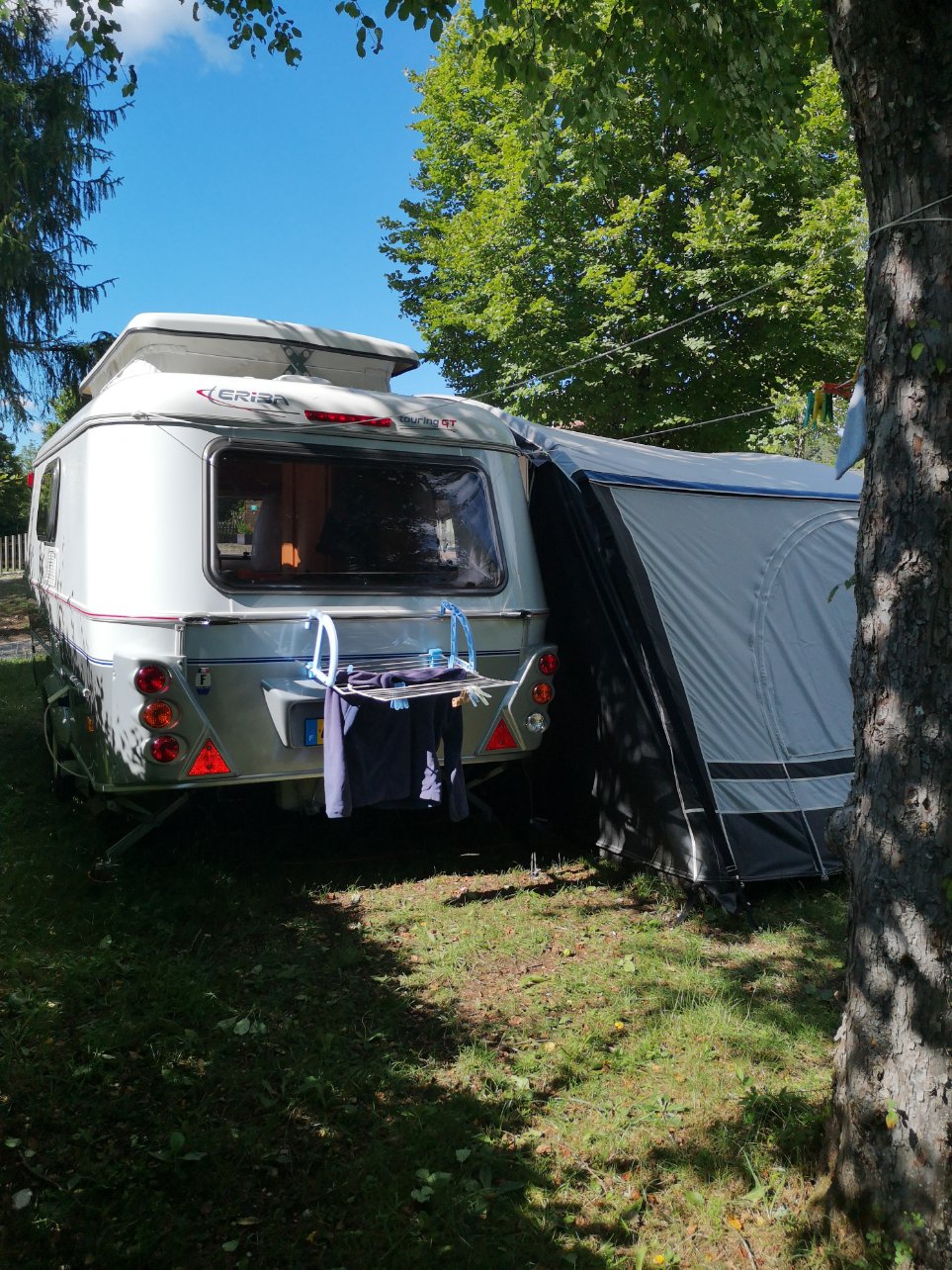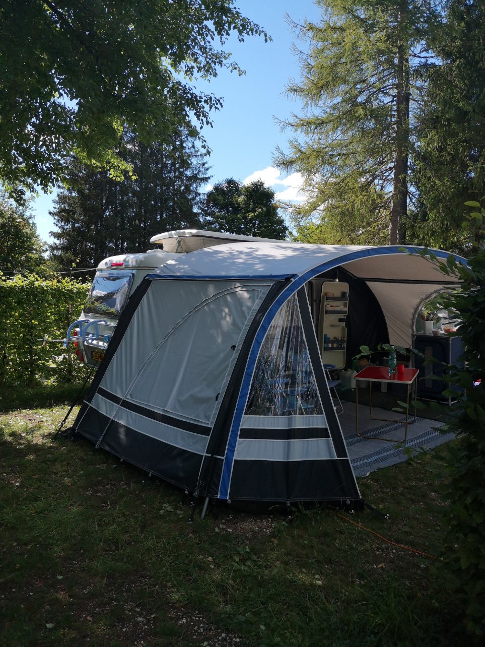 Ceci étant dit, comme on y est pour plusieurs jours j'ai voulu installer l'auvent gonflable Triganno qu'on avait acheté l'année dernière; ce jour là on a fait la plus belle connerie de notre vie.