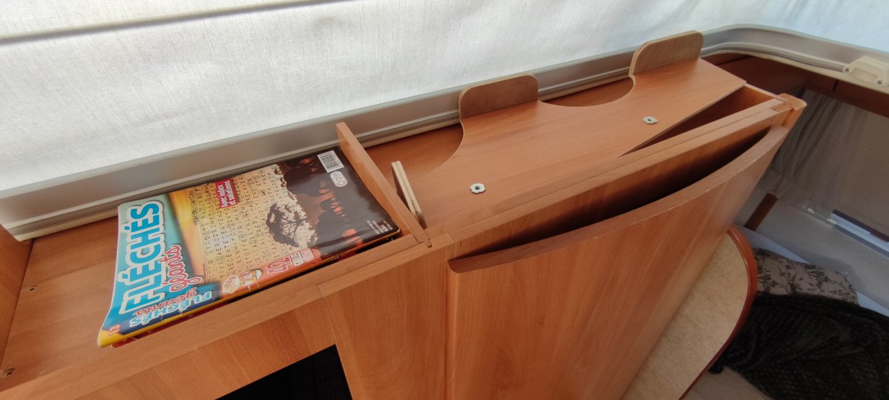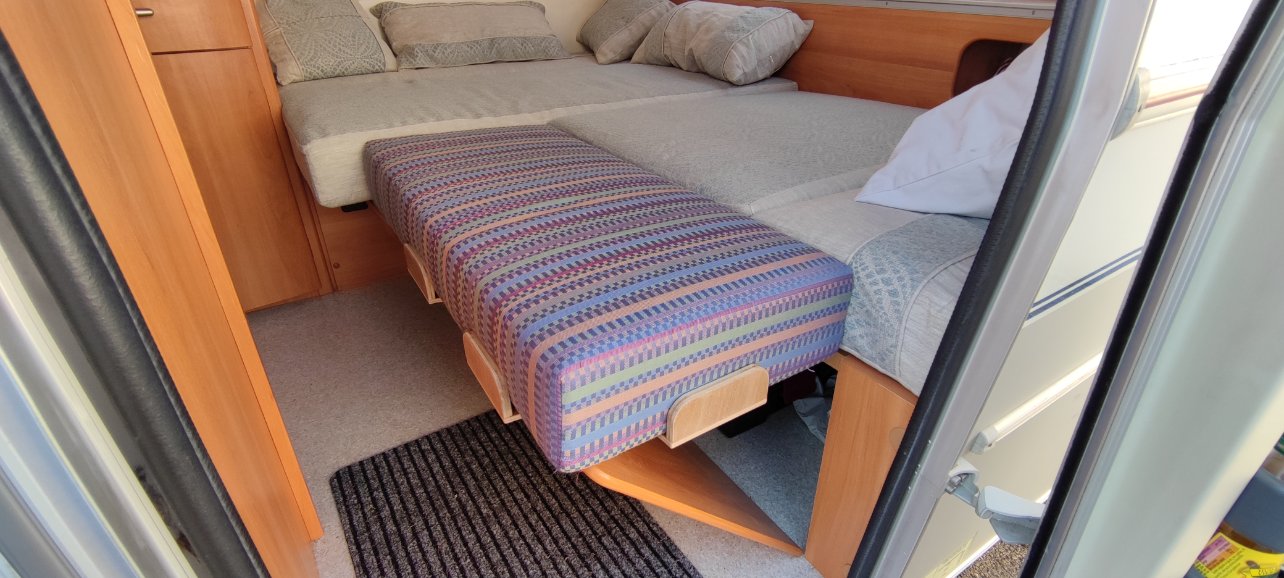 La dinette arrière a été transformée en lit permanent par l'ancien proprio.