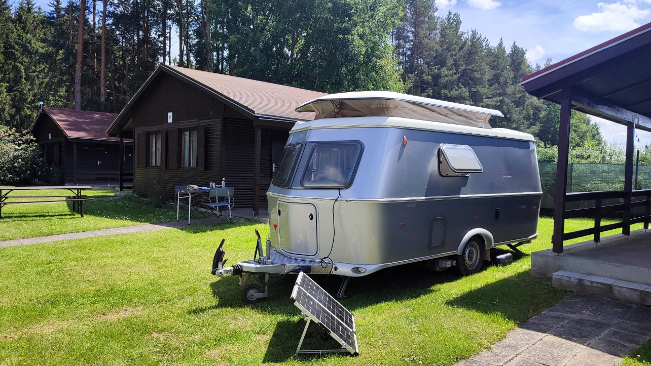 Bonjour à tous ! nous avons finalement acheté la batterie que nous recommandait Nîmes Caravanes, nous avons testé le panneau solaire dans un camping de Tchéquie (6€ électricité) et nous en sommes contents ! même notre glacière Vevor peut être dessus, donc nous utilisons que très rarement le chauffage au gaz et le frigo gaz. Lorsque nous sommes dans un camping ACSI bien sûr nous avons dans le prix l'électricité sinon nous utilisons le panneau solaire très vite mis en place. Notre voyage se poursuit en Tchéquie du nord actuellement, amicalement,