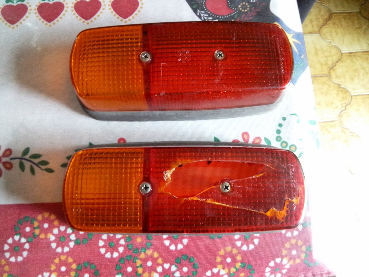 Sur ma Puck les feux de signalisation sont montés verticalement, il s'agit de feux ULO K 23372. Malheureusement le cabochon du feu gauche est cassé, j'ai cherché sur le net sans résultat pour le moment.