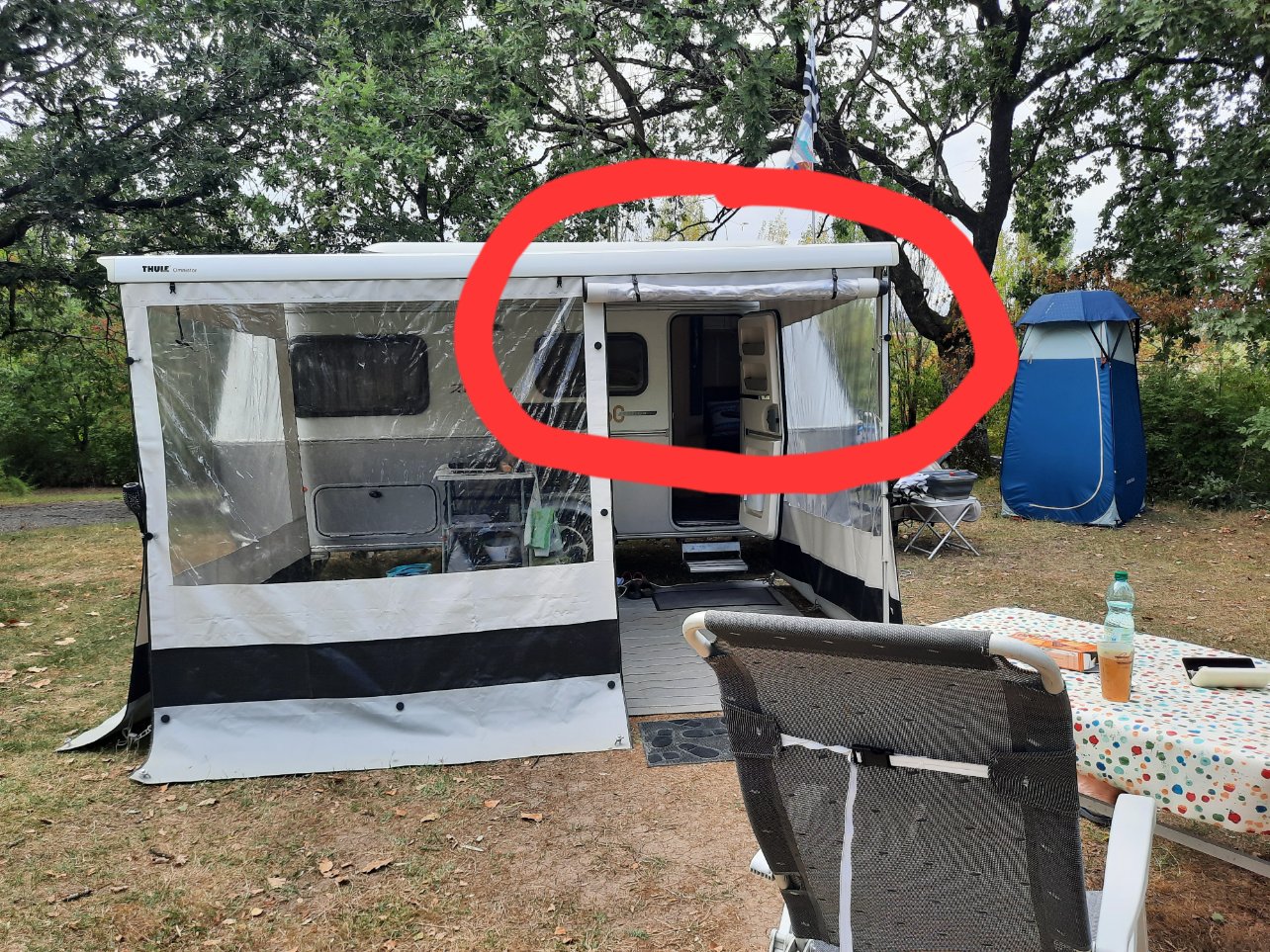 Suite à notre changement de modèle de caravane : eriba : , nous avons une façade Thule Rain Blocker de 127 de large x 210 de haut à vendre, car pas suffisamment large maintenant vu la longueur du store (25 cm de plus).