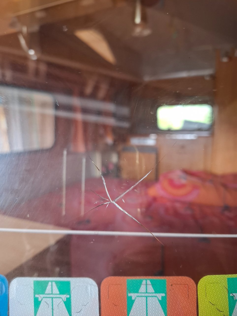 ! Bonne nouvelle : l'assurance prend tout en charge et nous laisse trouver un réparateur. Mauvaise nouvelle : impossible de faire changer ou réparer la baie à Dijon Cernay ne répond pas, à Saint Léger sur Dheune, ils nous disent ne rien pouvoir faire. J'ai appelé "Mich", à Revigny, dans le 39, qui nous propose de passer avec la caravane pour vérifier que ses quelques baies neuves correspondent en dimension (c'est du simple vitrage 6mm)et si oui, il propose de changer la baie.