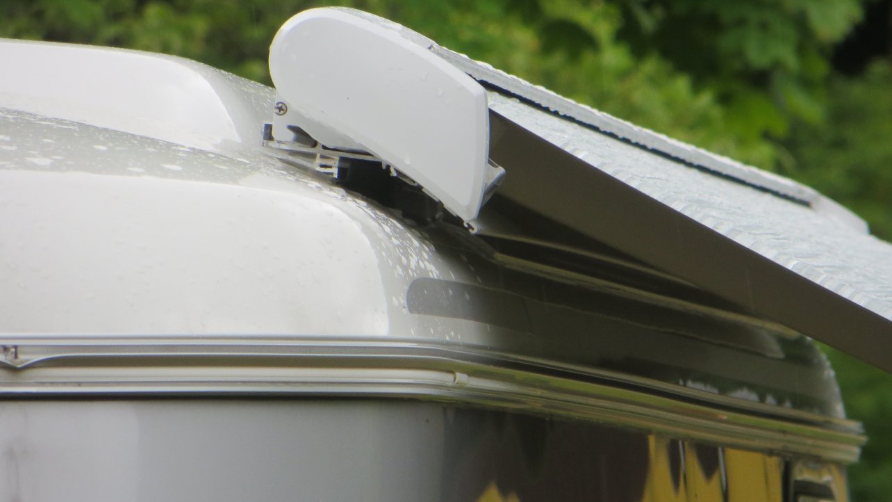 Effectivement prendre un aimant et chercher l'ossature pour que la patte appuie sur le tube derrière la tôle, et non sur la tôle alu de faible épaisseur... Pas besoin de percer le toit, les colles actuelles ont des performances suffisantes.