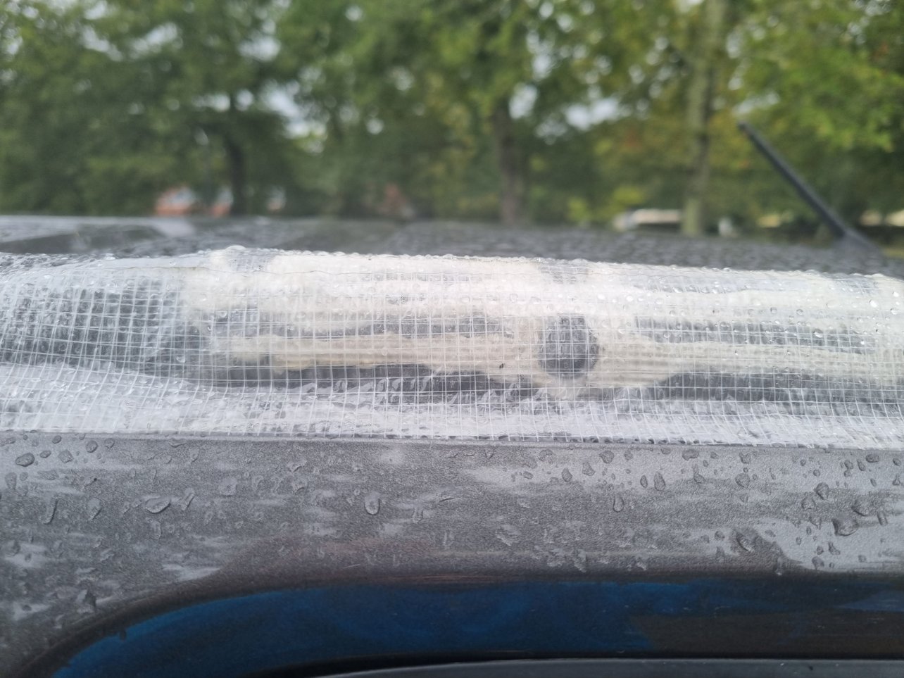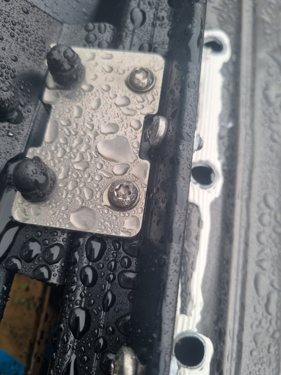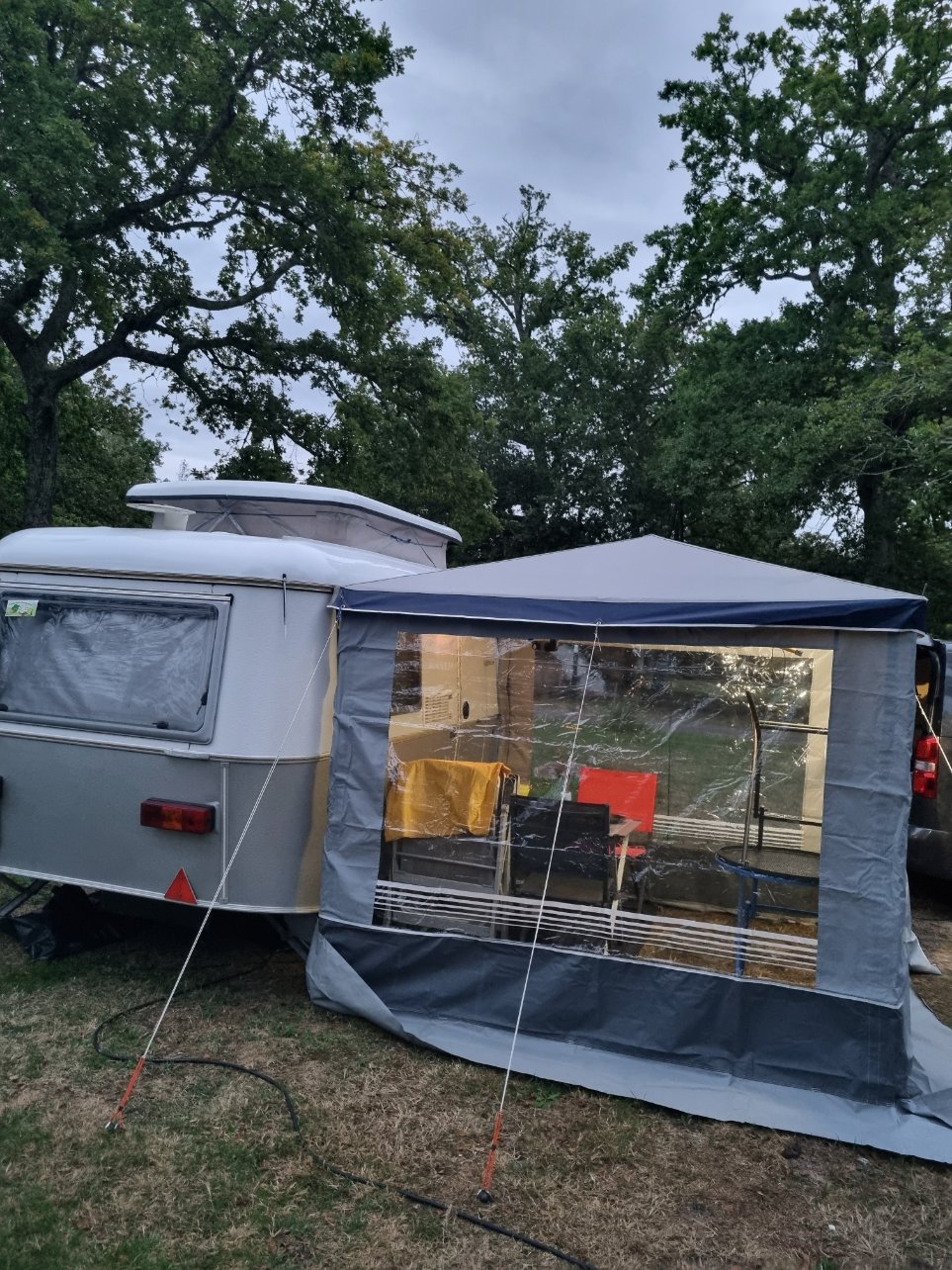 Bah voila, 1 ère nuit le jf fatigué se couche tôt et oublie de régler une inclinaison prononcée du store, durant la nuit gros déluge, 2h00 du mat toujours pluie torrentielle, le jf se réveille inquiet entrouvre la porte braque sa torche et l'horreur, une énorme poche d'eau s'est formée, in-remuable, j'essaie de basculer un pied mais trop rapidement une grosse vague se forme, un craquement sinistre très bref le store s'est arraché du toit
