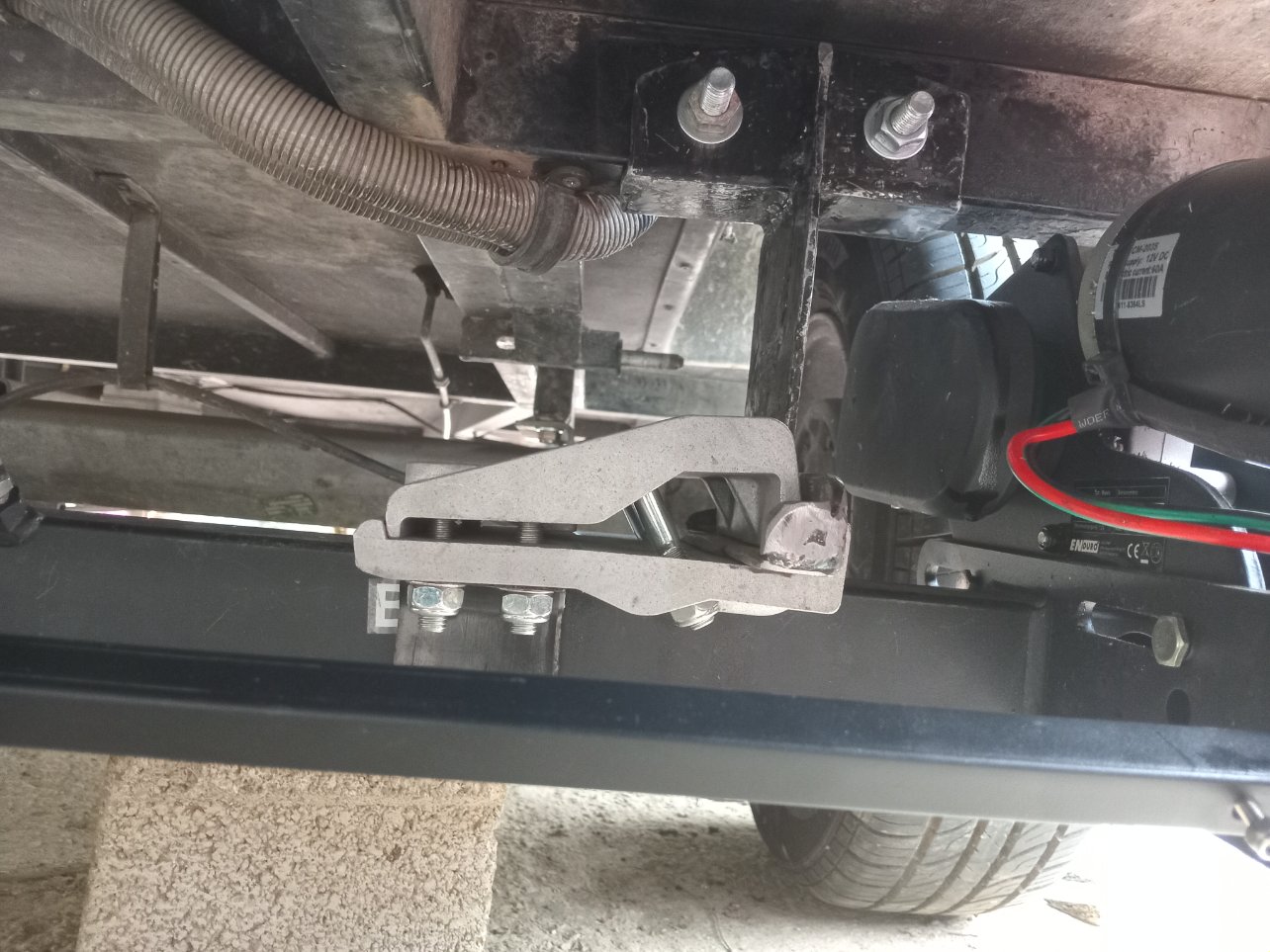 Après un arrêt forcé, petite solution pour ma roue de secours, puisque j'ai une cuve eau grise dessous : eriba : et je ne la voulais pas sous lit permanent, et puis le poids derrière, la batterie, eau etc.. alors voilà j'ai décidé ça