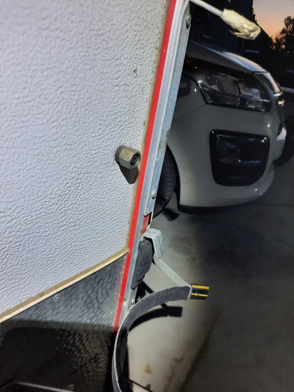 J'ai pré-percé le milieu à 3 mm (la barre à la pointe de la caravane), on a la surface molle et ensuite une partie métal apparemment, et ensuite j'ai vissé des vis à tôle. C'est bien cela la procédure (pas de risque de fragilité de la structure , ou perçage à un endroit litigieux ) ? J'avais envie de détordre aussi le support installé, mais bon, je me suis dit que peut-être le coffre rentrerait plus aussi bien, bref, j'ai laissé comme c'était. J'ai rebouché les trous existants au silicone Sika