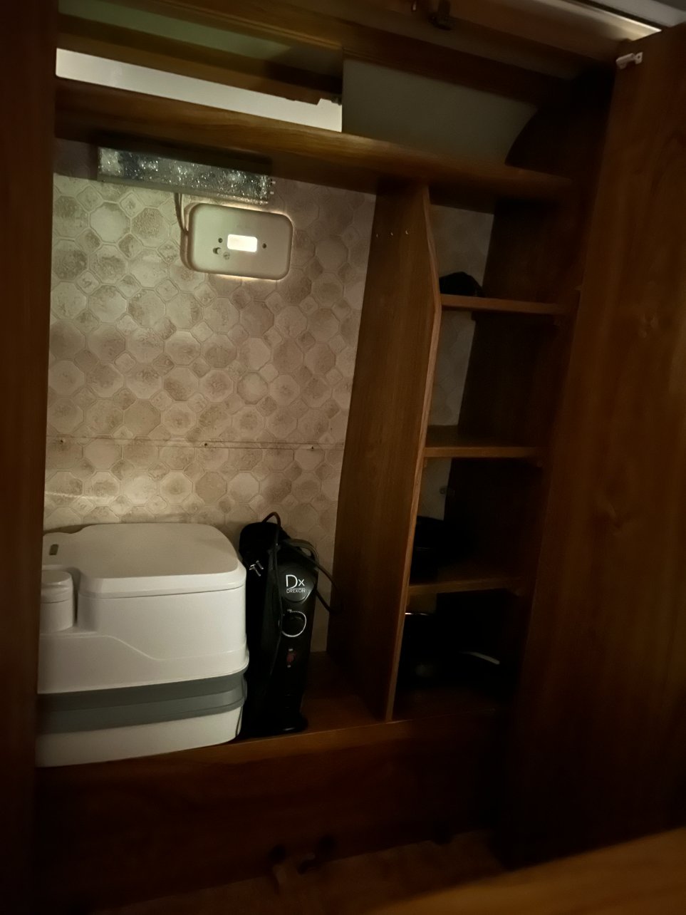Quelques tâches de résine de pin sur le toit de l’auvent et de la caravane