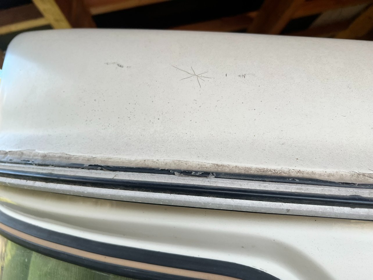 - Le toit : le gelcoat est fatigué à plusieurs endroits, il y a des trous, fissures, impacts.