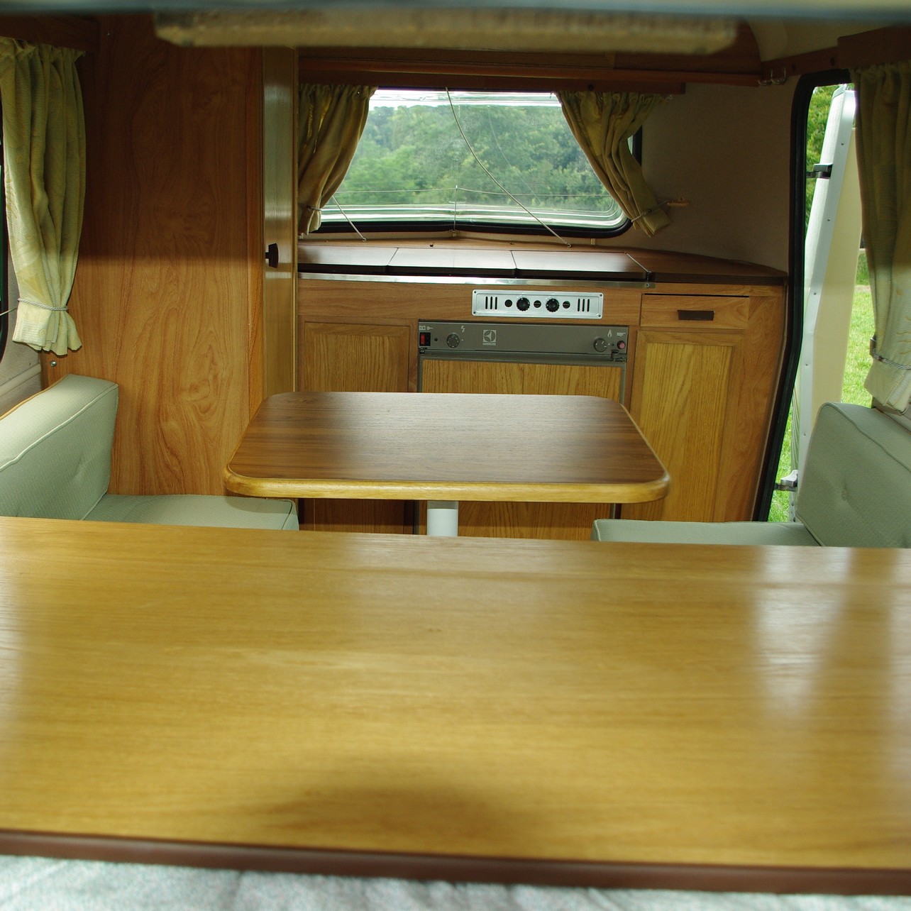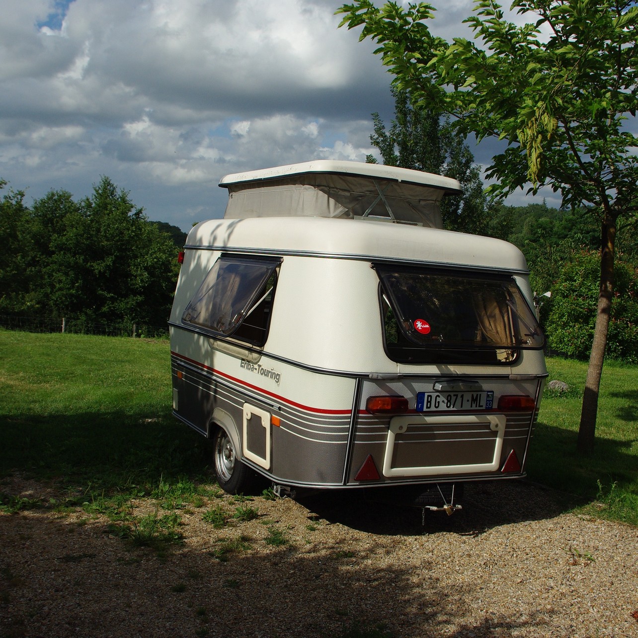 je me présente un peu mieux, après avoir cherché chez vous ma future Eriba Puck et potassé la mine d'or que recèle vos forums..! J'en ai vu deux ou 3, je me suis fait souffler avant de partir celle de mes rêves, puis Christophe m'avait proposé la sienne, malheureusement je suis partie en vacances ( en toile de tente , sniff!). Mais j'ai trouvé mon bonheur en rentrant, à 2 pas de chez moi, je suis ravie comme une gamine! C'est un modèle 1991, donc récent, un poil modifié (literie qui se replie vers l'arrière avec donc 2 sièges et table de bateau à demeure, super bien fait, ainsi que des ouvertures extérieures pour accéder au coffre. Bon, je sais, les puristes trouveront cela dommage, mais pour moi c'est super pratique, et ce n'est pas non plus un modèle super collector des années 70...