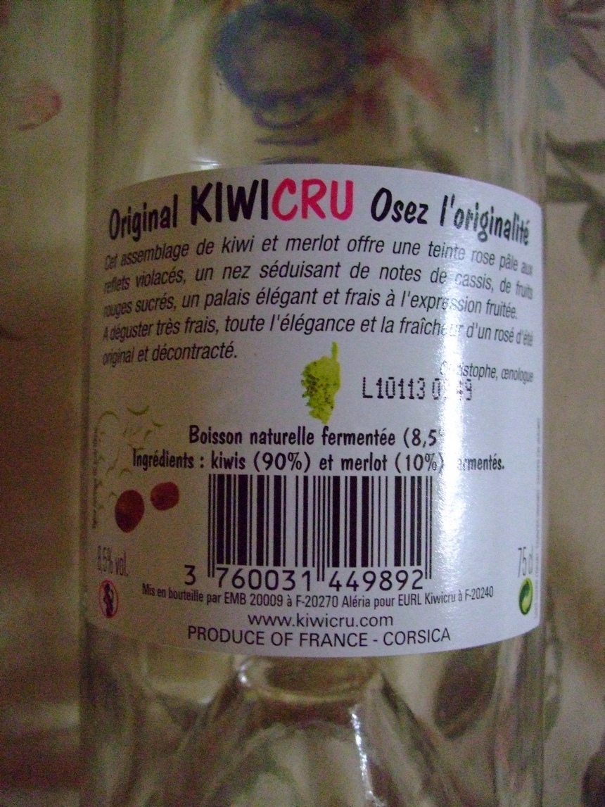 j'ai enfin retrouvé sur le "continent" le "vin" de kiwi gouté en Corse : c'est une boisson fermentée à base de kiwis et de raisins : connaissez-vous ?