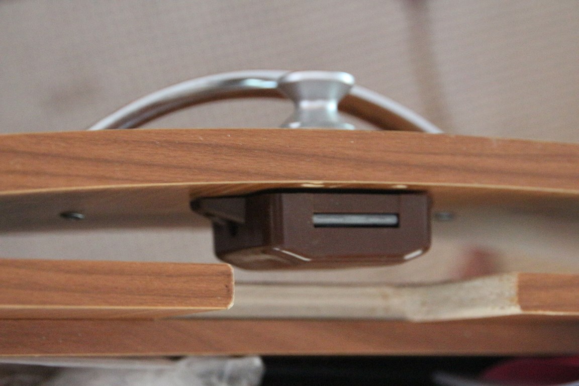 Pour le placard sous l'évier, les 2 loqueteaux en métal me semblent bien costauds sur la mienne. Est-ce que ton jerrycan d'eau aurait pu pousser sur la porte ? (si rempli et mal sanglé)